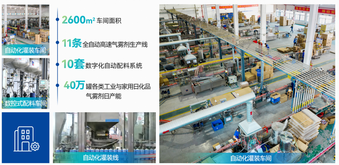 信鵬化工擁有甲、乙、丙類立體倉庫各一棟,2022 年投入落成 3600 平方米的專業(yè)級氣霧劑化妝品車間,符合 GMP 車間 10 萬級的潔凈度標(biāo)準(zhǔn)要求,同時搭配 4 條化妝品專用全自動氣霧劑充填生產(chǎn)線及乳化配料系統(tǒng);公司擁有一支二十多年氣霧劑研發(fā)生產(chǎn)經(jīng)驗的管理團隊, 技術(shù)和研發(fā)實力雄厚,為珠三角內(nèi)為數(shù)不多的在化工園區(qū)內(nèi)合規(guī)的專業(yè)氣霧劑制造基地;企業(yè)擁有自主進出口權(quán),已取得危險化學(xué)品生產(chǎn)許可證、化妝品生產(chǎn)許可證、農(nóng)藥生產(chǎn)許可證、ISO9001、ISO14001 質(zhì)量管理體系,IATF16949、ISO22716體系、GMPC 等資質(zhì)認證。